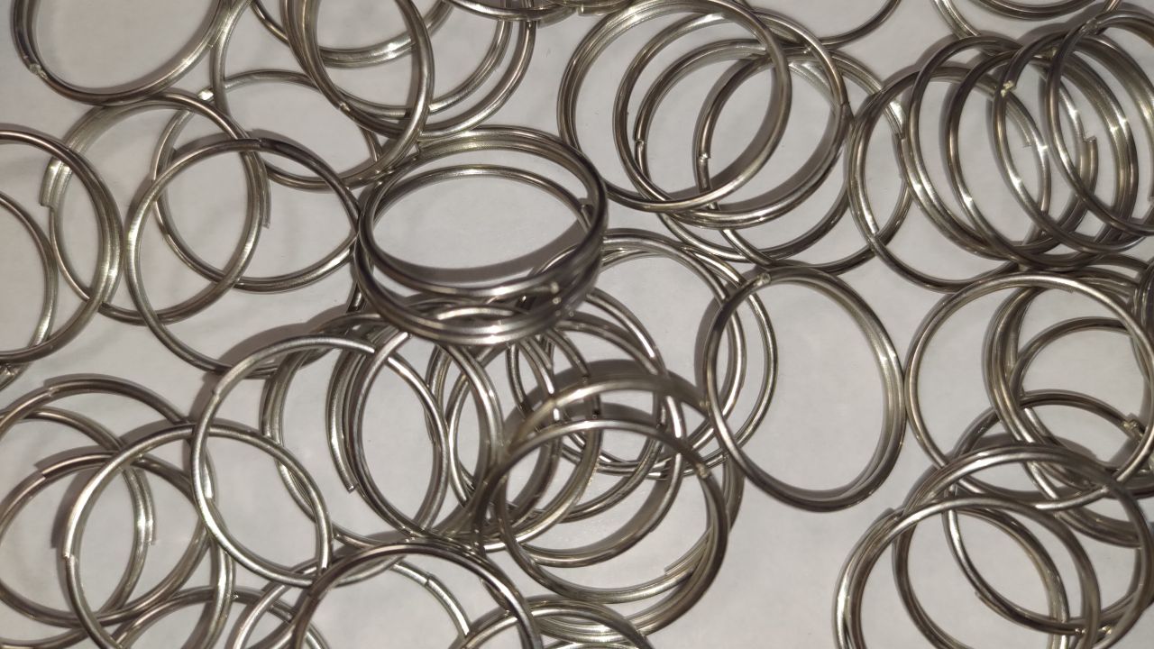 Kółko do kluczy 20 mm 1,5 zwoja, wykonane z stalowego drutu okrągłego, niklowane.